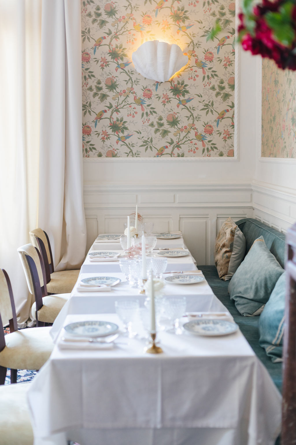 À l’intérieur, chaque pièce du Château Paloma révèle une ambiance unique, avec une décoration contemporaine et chaleureuse pensée pour marier confort et raffinement. Le parti pris est clair : créer des espaces où l’on se sent bien, que l’on vienne partager un déjeuner, un dîner, ou célébrer un moment important.